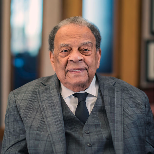 Young’s lifelong dedication to service is illustrated by his extensive leadership experience of over sixty-five years, serving as a member of Congress, African American U.S. Ambassador to the United Nations, Mayor of Atlanta, and ordained minister, among other positions.