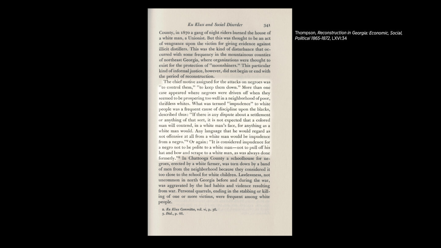 Though she showed sympathy for the Klan in line with her biased opinions about Black people, C. Mildred Thompson was aware of this fact, and clearly stated it in Reconstruction in Georgia.