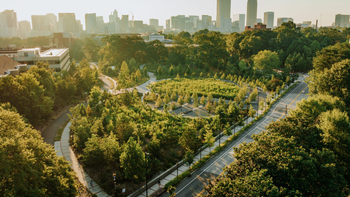 On Wednesday, April 15, 2026, the Cherokee Garden Library will host landscape architect Thomas Woltz for a lecture on his firm’s new monograph, The Land Is Full. The lecture highlights the firm’s projects that showcase the message of the monograph: the ability and necessity of landscape architecture to create vibrant public spaces and infuse narratives of the land into cities. The firm’s work includes local projects like Georgia Tech’s EcoCommons which is featured in the monograph itself and the newly unveiled Piedmont Park Comprehensive Plan.