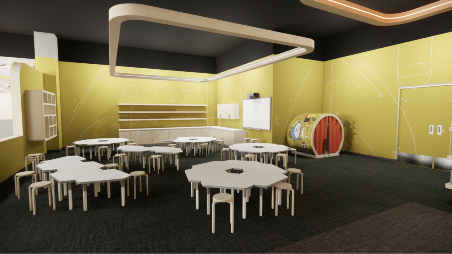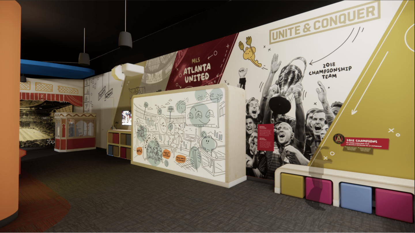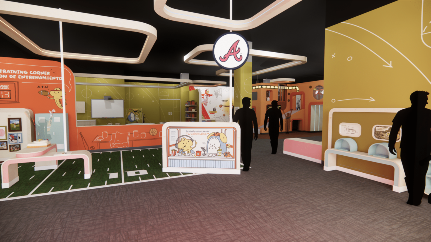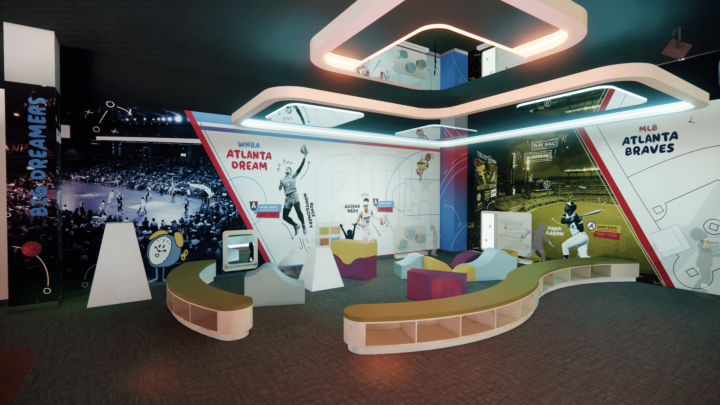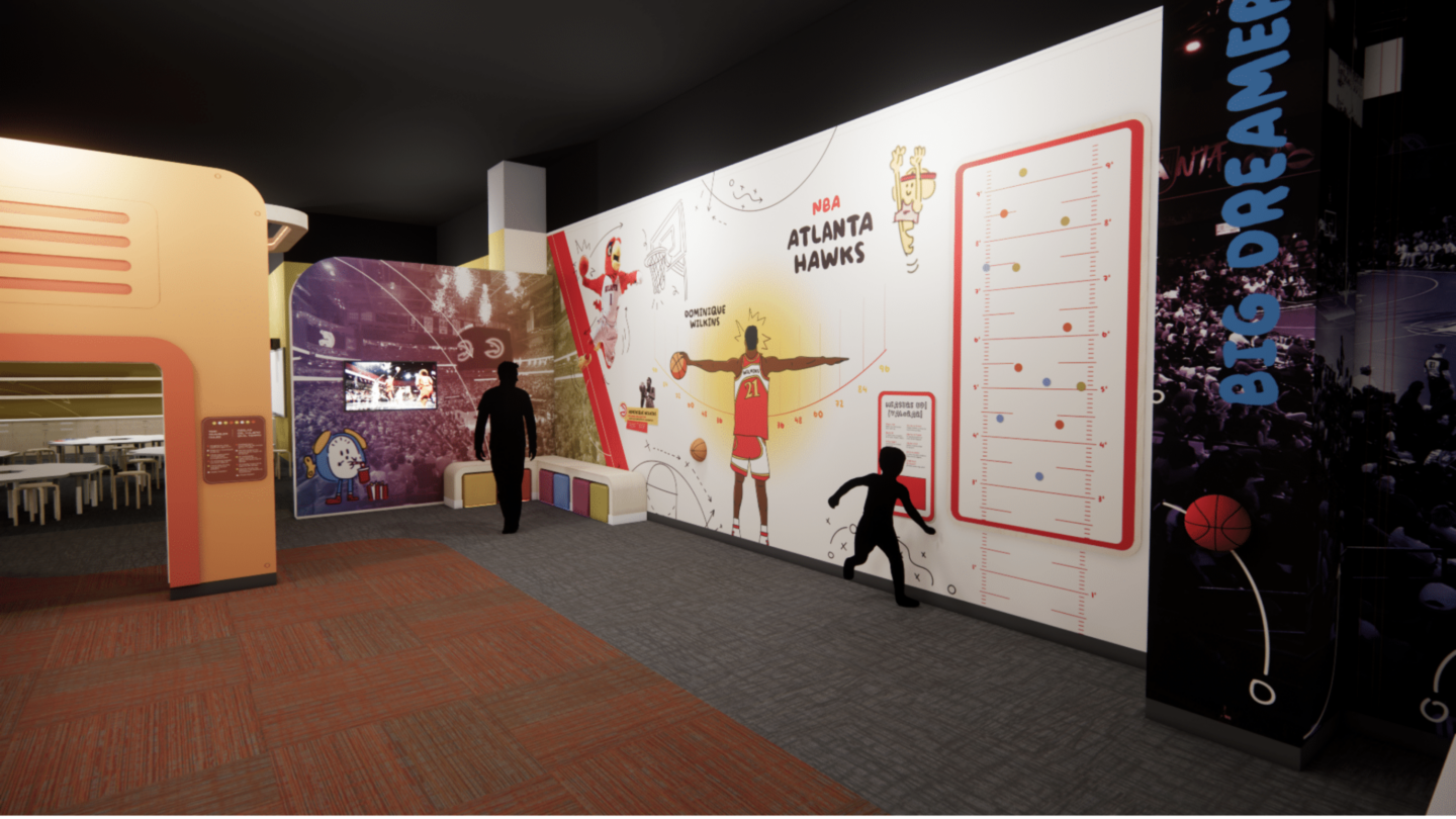 As well as the ATL All-Star Training Corner, which features two storage lockers, a picture wall with hidden athlete-related objects, and a warm-up zone with client-provided videos showing real pro stretches and drills.