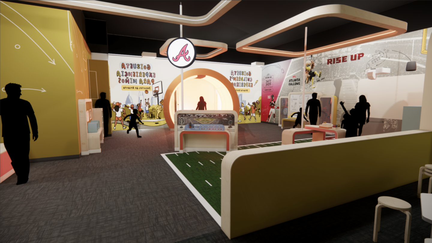 Welcome to the gallery-sized Mini Fox Theatre—a dynamic space where young imaginations take center stage. Inspired by the Fox Theatre’s iconic grandeur, but with a twist! Stage backdrops get a sporty refresh highlighting Truist Park, Mercedes Benz Stadium, and State Farm Arena.