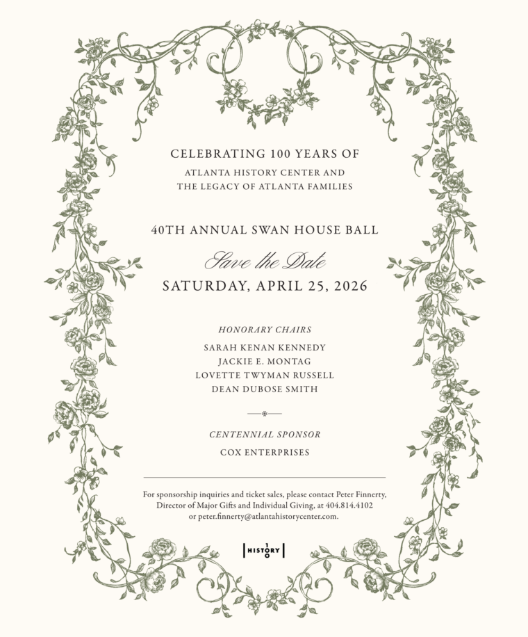 Celebrating 100 years of Atlanta History Center and the legacy of some of Atlanta’s most philanthropic families, the 40th annual Swan House Ball will bring together Atlanta’s business, community, and social leaders to experience an evening of elegance and fun at Atlanta History Center. Honorary event chairs Sarah Kenan Kennedy, Jackie E. Montag, Lovette Twyman Russell, and Dean DuBose Smith invite you to join them in honoring Atlanta History Center’s centennial year. Funds raised by the Swan House Ball support the annual operation of Atlanta History Center and its award-winning educational programs.
